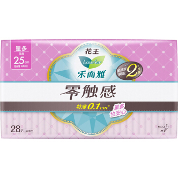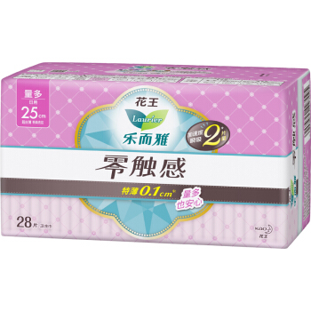 花王乐而雅(laurier)零触感特薄超长量特多日用卫生巾25cm 28片(新老包装随机发放)