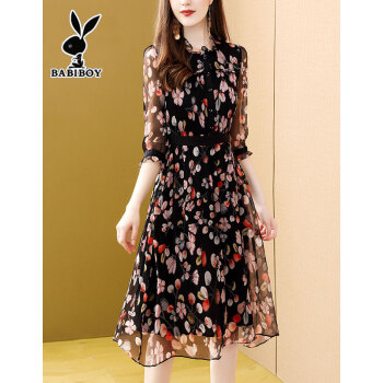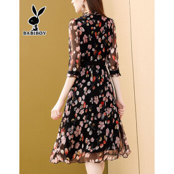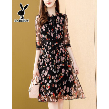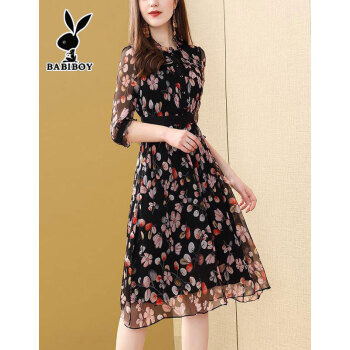 BABIBOY 连衣裙女2020夏季新款女装高腰中长款韩版时尚气质百搭收腰显瘦洋气裙子 图片色 M