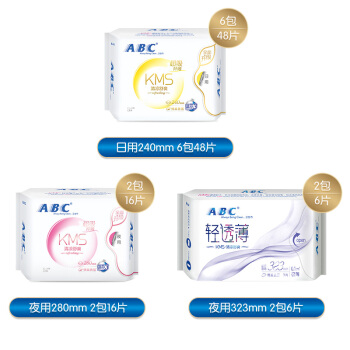 卫生巾>>ABC KMS纤薄棉柔日夜组合10包70片(日用48片+夜用22片)卫生巾套装