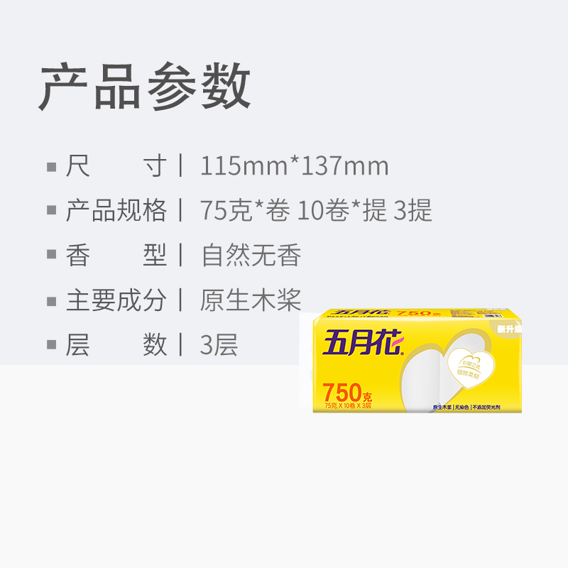 五月花无芯卷纸3层75g30卷