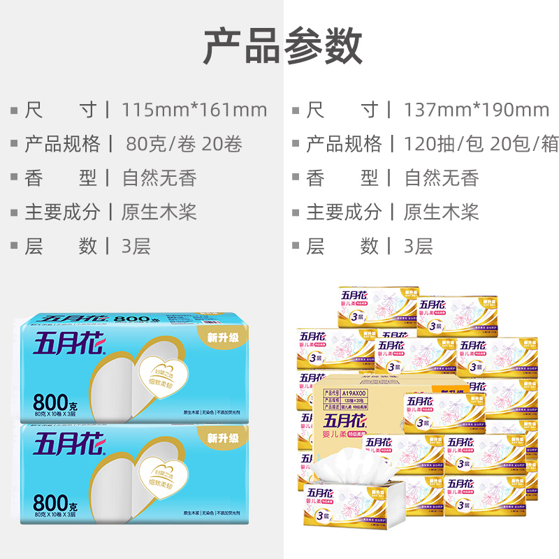 五月花金装抽纸3层120抽20包+卷纸80g20卷(分两个包裹发货)