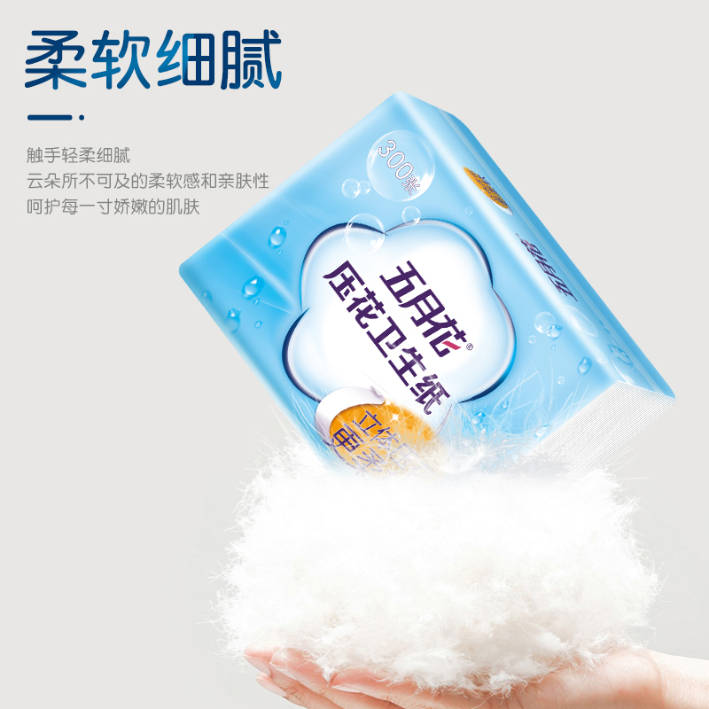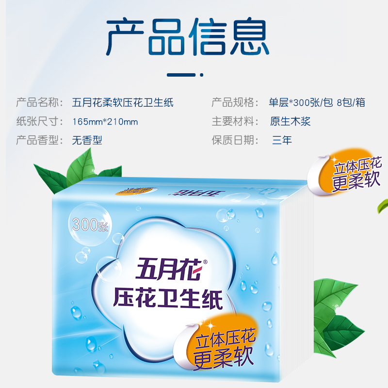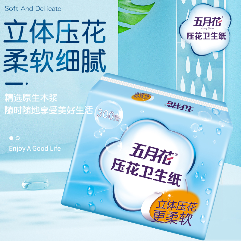 五月花新型压花平板卫生纸300张8包