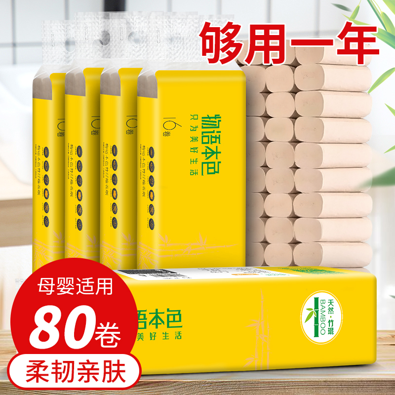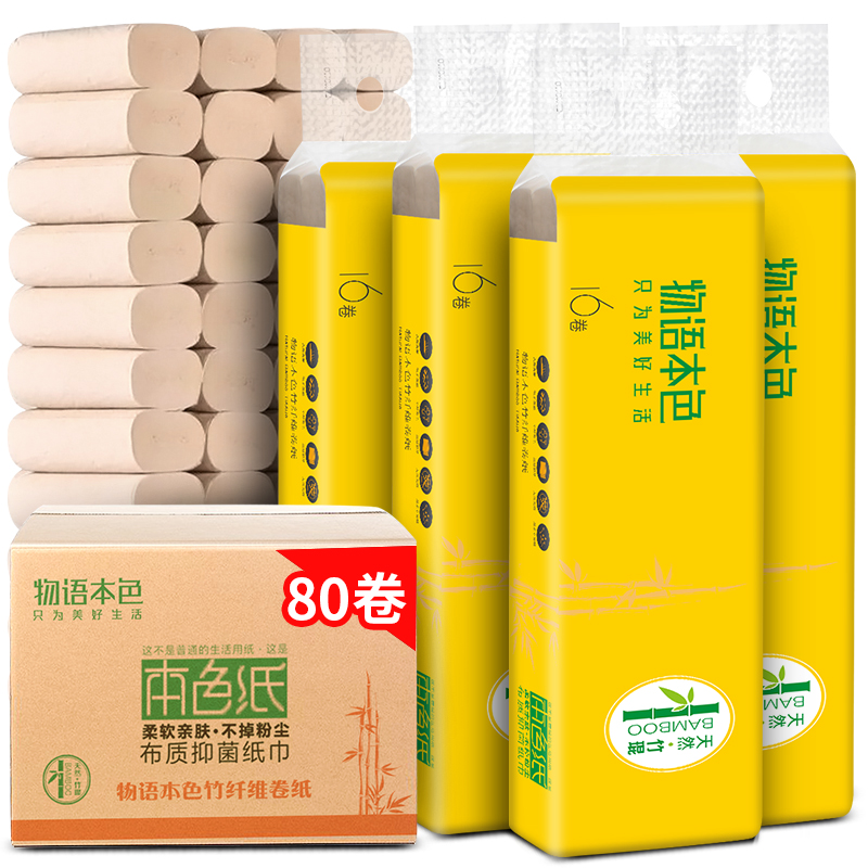 【超值单品】原生竹浆本色卷纸80卷箱装