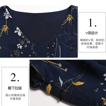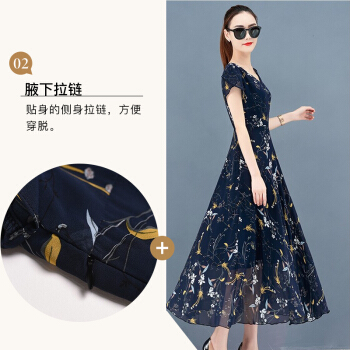佬唐森印花雪纺连衣裙2020夏季新款碎花长裙大码女装遮肉显瘦减龄裙子 蓝底水仙花 请拍正确尺码