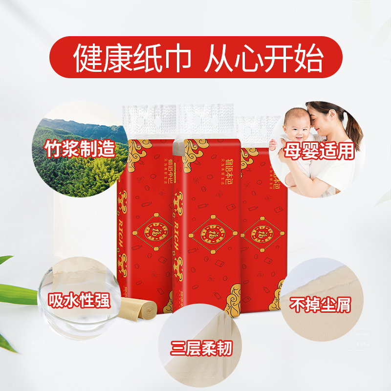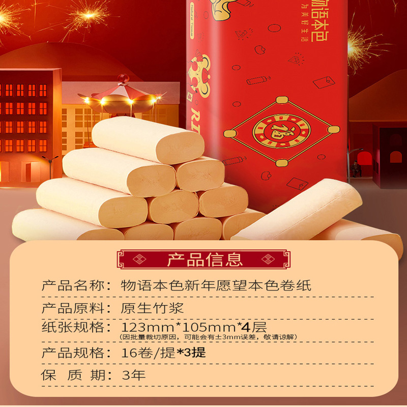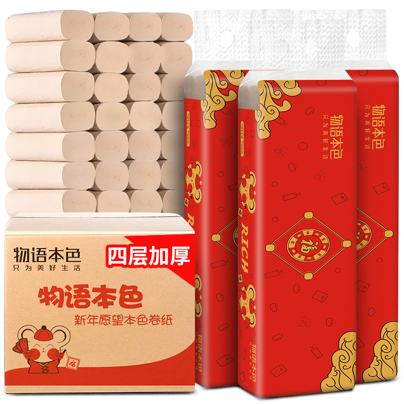 鼠年专属定制原生竹浆本色卷纸48卷/箱