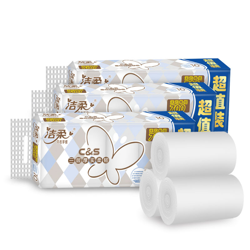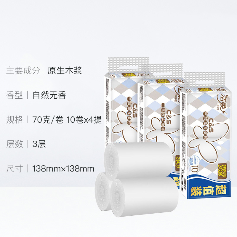 洁柔布艺方格10卷x4提无芯卷纸