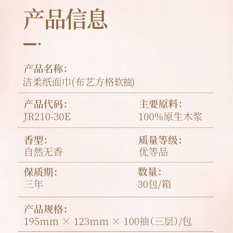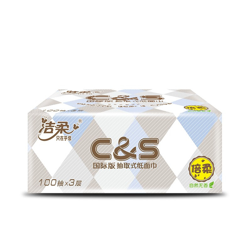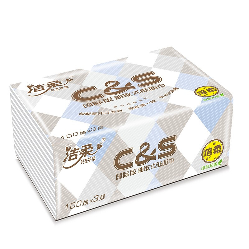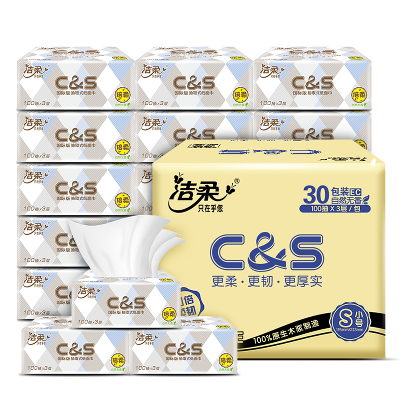 洁柔纸面巾(布艺方格软抽)3层100抽30包
