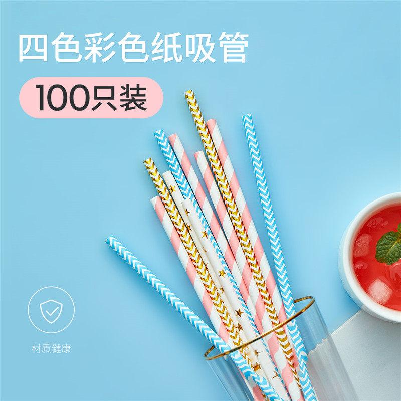 彩色纸吸管4色100只【聚丙烯/图片色】