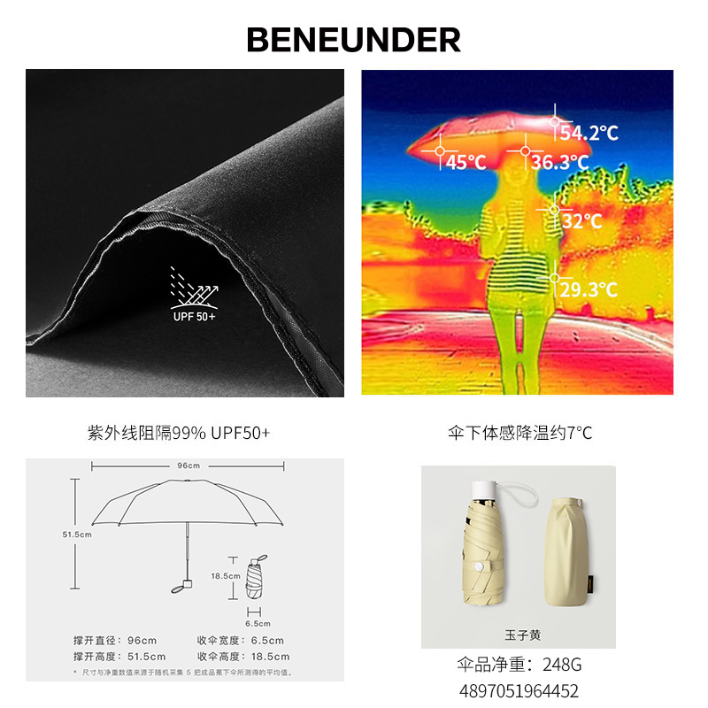 BANANAUNDER蕉下 纸意太阳伞 小巧便携折叠两用晴雨伞遮阳防晒防 彩胶【聚酯纤维/玉子黄】