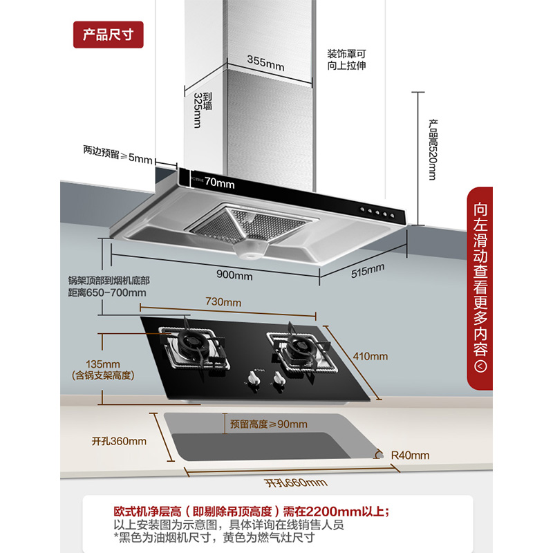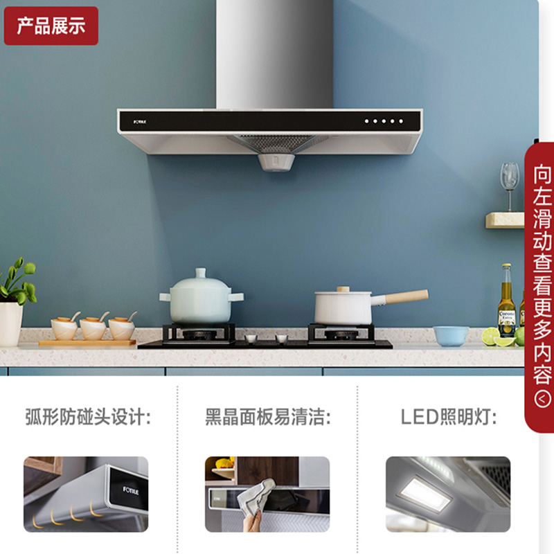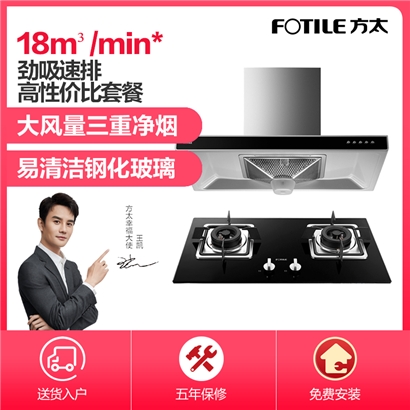 EH37+FD23BE 三重净烟 18m3/min大风量 4.1KW*大火力 烟灶套装【不锈钢+钢化玻璃/黑色】