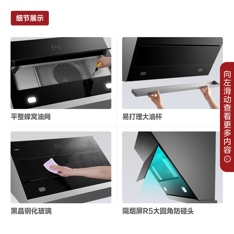 集成灶>>JQC2+TH33B 一键瞬吸 19m3/min大风量* 每日换气 4.2KW*大火力 烟灶套装【钢化玻璃/黑色】