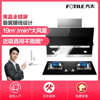 JQC2+TH33B 一键瞬吸 19m3/min大风量* 每日换气 4.2KW*大火力 烟灶套装【钢化玻璃/黑色】