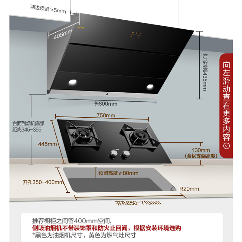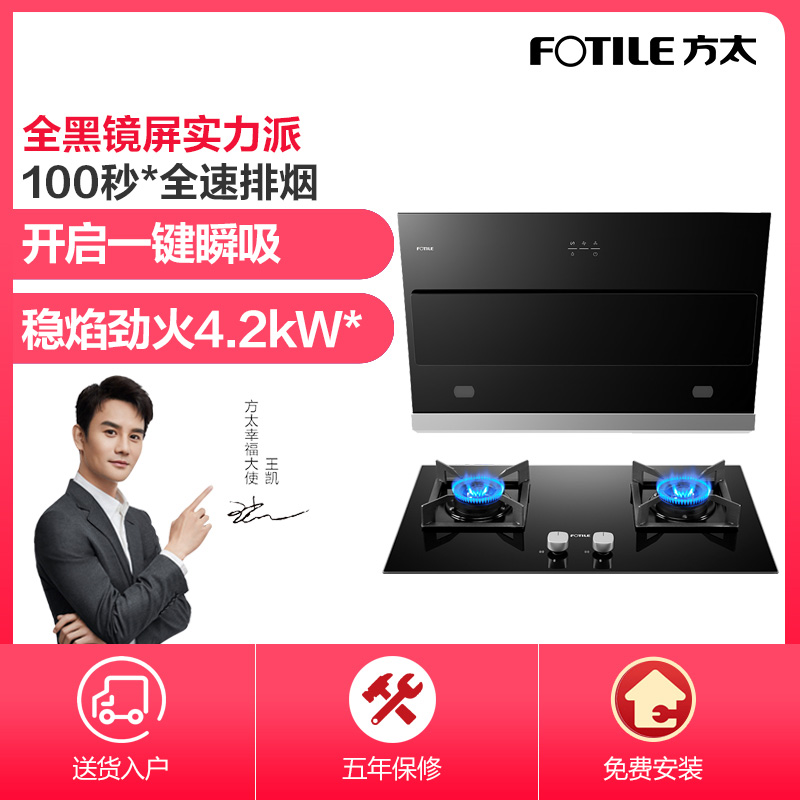 JQC5+HT9BE 一键瞬吸 每日换气 19m3/min大风量* 4.2KW*大火力 烟灶套装【钢化玻璃+不锈钢/黑色】