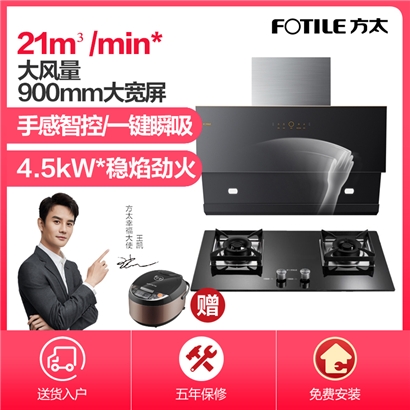 JCD1+TH2B 手感智控 一键瞬吸 21m3/min大风量* 4.5KW*大火力 烟灶套装【不锈钢+钢化玻璃/黑色】 |