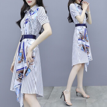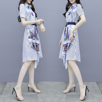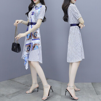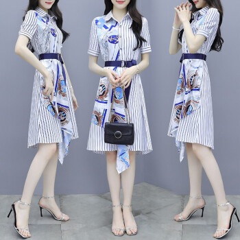 莱倪晟纳短袖连衣裙新品2020夏季新款韩版时尚宽松显瘦气质减龄两件套装沙滩裙子 上衣+裙子 请拍正确尺码