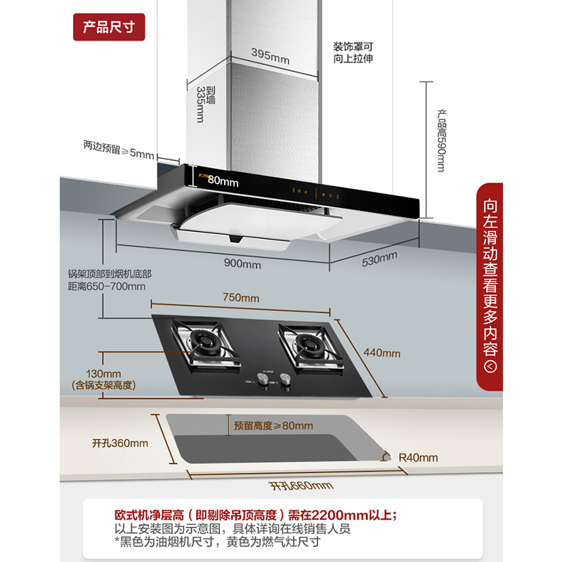 EMD20T+TH2B 手感智控风魔方 20m3/min*大风量 4.5KW*大火力 烟灶套装【不锈钢+钢化玻璃/黑色】 |