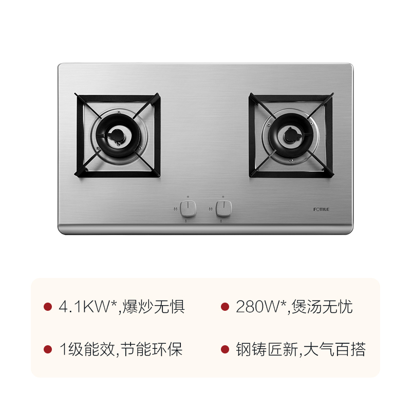 HT8GE 耐高温 4.1KW*大火力 一级能效 易清洁 不锈钢 燃气灶【不锈钢/不锈钢色】