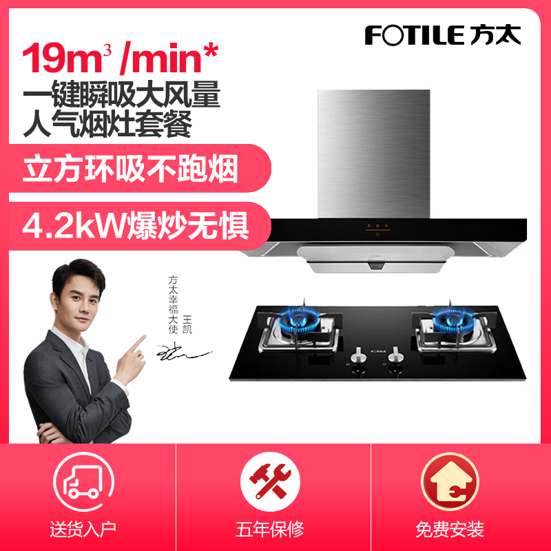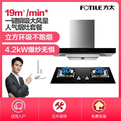 EMC3+TH33B 一键瞬吸云魔方 19m3/min*大风量 100S*全速排烟 烟灶套装【不锈钢+钢化玻璃/黑色】