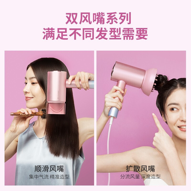 直白HL520新一代水离子负离子护发电吹风机大功率家用冷热风嘴筒【ABS/粉色】