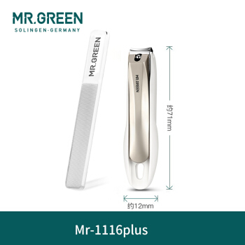 MR.GREEN进口不锈钢指甲刀防飞溅指甲剪家用单个指甲钳修甲美甲工具礼盒装 平口中号 Mr-1116plus |
