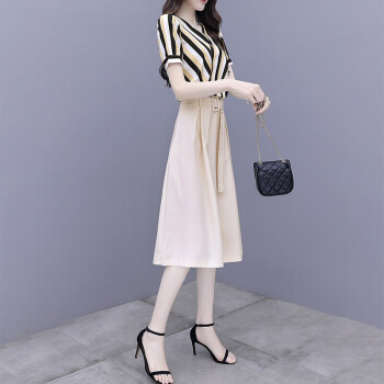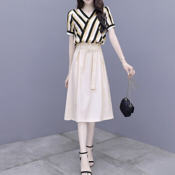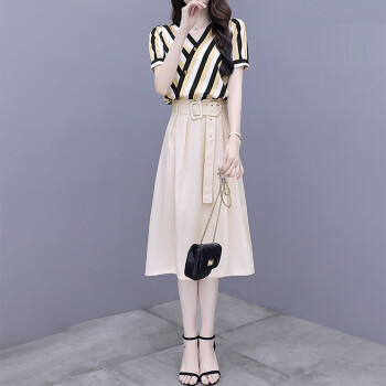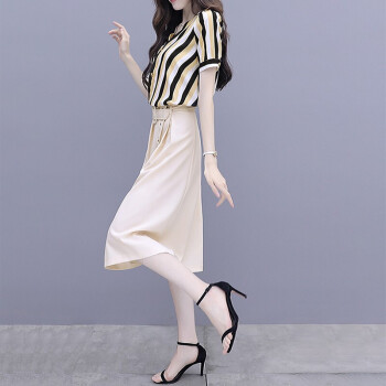 莱倪晟纳短袖雪纺连衣裙女装新品2020年夏季新款韩版中长款印花宽松显瘦时尚性感减龄两件套装沙滩裙子 上衣+裙子 请拍正确尺码