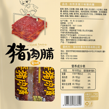 自然派 蜜汁味猪肉脯 猪肉干肉脯 独立包装即食特产小吃休闲零食100g