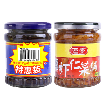 蓬盛 酱腌菜 香港橄榄菜+虾仁菜脯 开胃下饭菜组合装 195g*2 潮汕特产