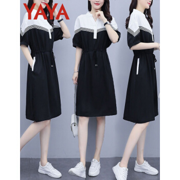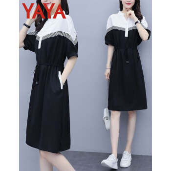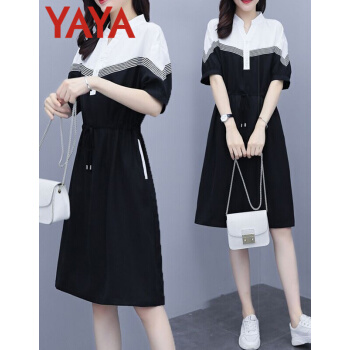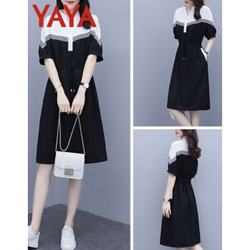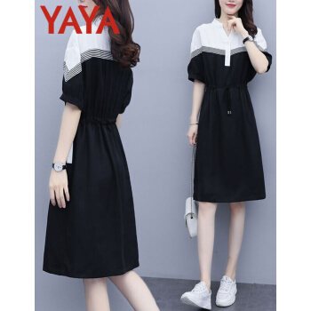 连衣裙>>鸭鸭服饰(yaya)连衣裙女2020女装夏季新款大码女装气质显瘦中长款收腰减龄裙子女 黑色 请选正确尺码