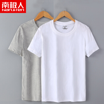 南极人(Nanjiren)两件装 男士短袖t恤圆领黑白体恤T 纯色半袖上衣服打底衫男装CST01 白+灰 L