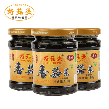 好菇婆 香菇菜酱腌菜下饭菜 180g瓶装 广东潮汕特产 香菇酱 小菜开胃菜 拌面拌饭酱 早餐配菜 【原味香菇菜 3瓶装】540g