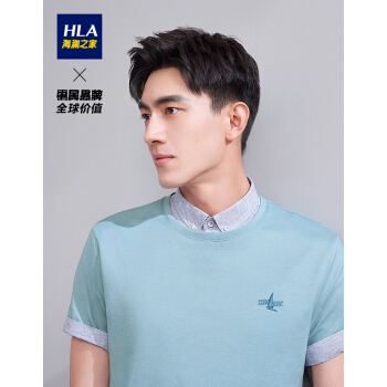 短袖T恤>>HLA海澜之家前胸绣花短袖T恤2020夏季新品圆领棉质男白色半袖t恤HNTBJ2Q072A 浅蓝71 175/92A/L