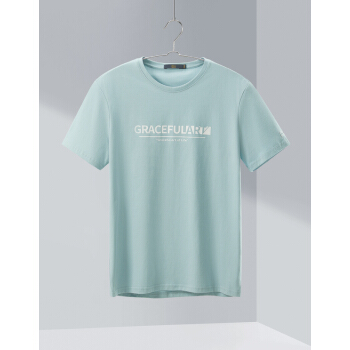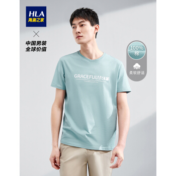 短袖T恤>>HLA海澜之家舒适半袖短袖T恤2020夏季新品圆领字母印花套头衫男HNTBJ2Q137A 浅绿花纹D7 175/92A/L