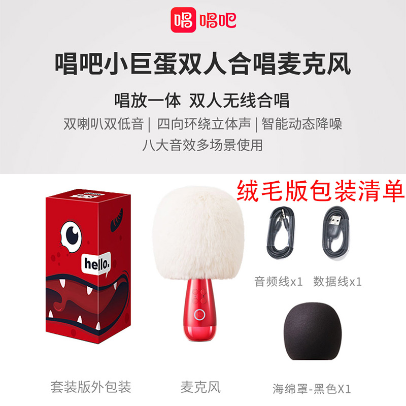 小巨蛋向往的生活同款唱放一体麦克风(白色毛绒版)【锌合金/绯红色】