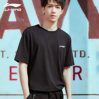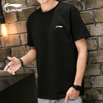 李宁(LI-NING)T恤夏季新品休闲系列男子圆领速干透气上衣跑步健身短袖运动服 -6新标准黑 L(175) |