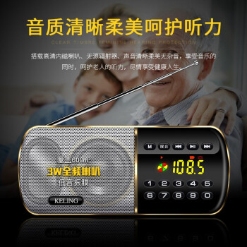 科凌F8收音机老人半导体全波段老年播放器随身听袖珍迷你充电便携式听歌唱戏机调频广播听戏评书机插卡音箱 中国红