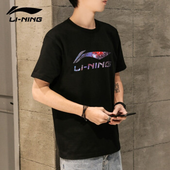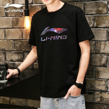 短袖T恤>>李宁(LI-NING)短袖t恤男2020夏季速干圆领T恤舒适透气半袖棉打底衫运动服 基础黑-纯棉(星空) L(175)
