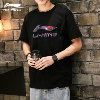 李宁(LI-NING)短袖t恤男2020夏季速干圆领T恤舒适透气半袖棉打底衫运动服 基础黑-纯棉(星空) L(175) |
