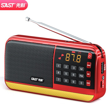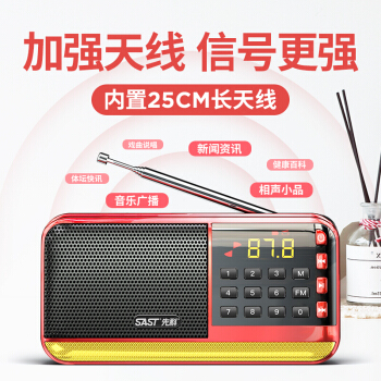 先科(SAST)V30红 收音机老人老年人充电插卡迷你小音箱便携式随身听fm调频广播音响音乐播放器