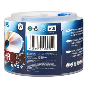 飞利浦(PHILIPS)DVD+R光盘/刻录盘 16速4.7G 手拎乖乖桶 桶装50片