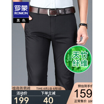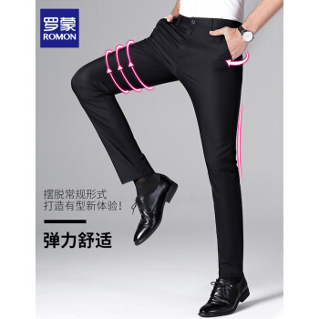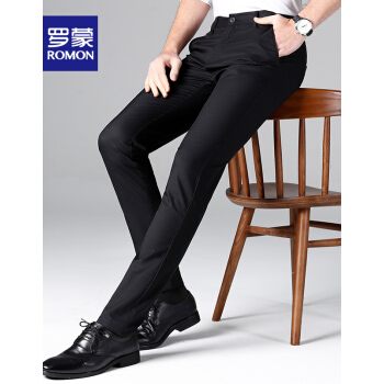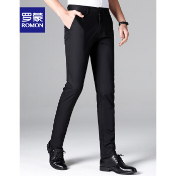 西裤>>【专柜正品】罗蒙休闲西裤男竹纤维时尚2020春季新款商务黑色百搭正装修身抗皱西装免烫休闲男裤 黑色 32