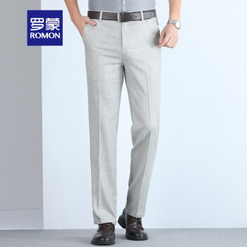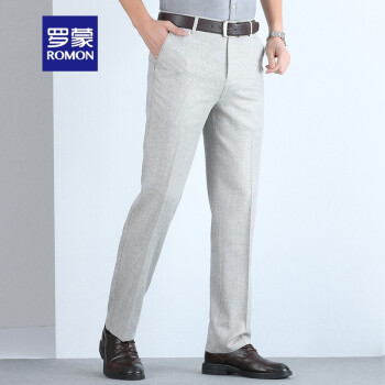 西裤>>罗蒙(ROMON)中老年男装裤子2020夏季新款亚麻休闲西裤男士商务长裤子男装棉麻宽松直筒爸爸装 浅灰 33