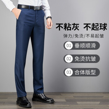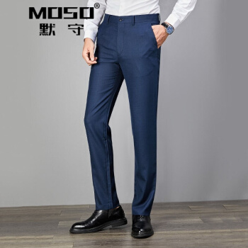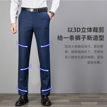 默守轻奢品牌男装西裤男商务正装宽松夏季中年免烫大码经典裤子男新款男装西裤礼物送老公 灰蓝 84S