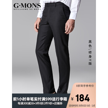西裤>>吉约蒙(G·MONS)西裤男修身正装商务休闲男士西装裤子男韩版百搭职业结婚新郎伴郎西服裤子男商场同款 黑色-修身版 32码(2尺5)