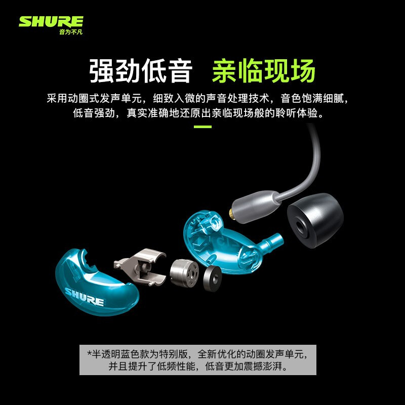 耳机>>舒尔 Shure Aonic215 UNI动圈有线耳机 入耳式专业影视制作监听耳机 专业录音HIFI监听耳机 蓝色