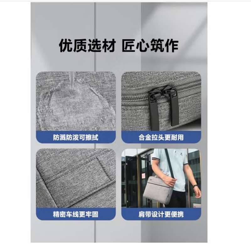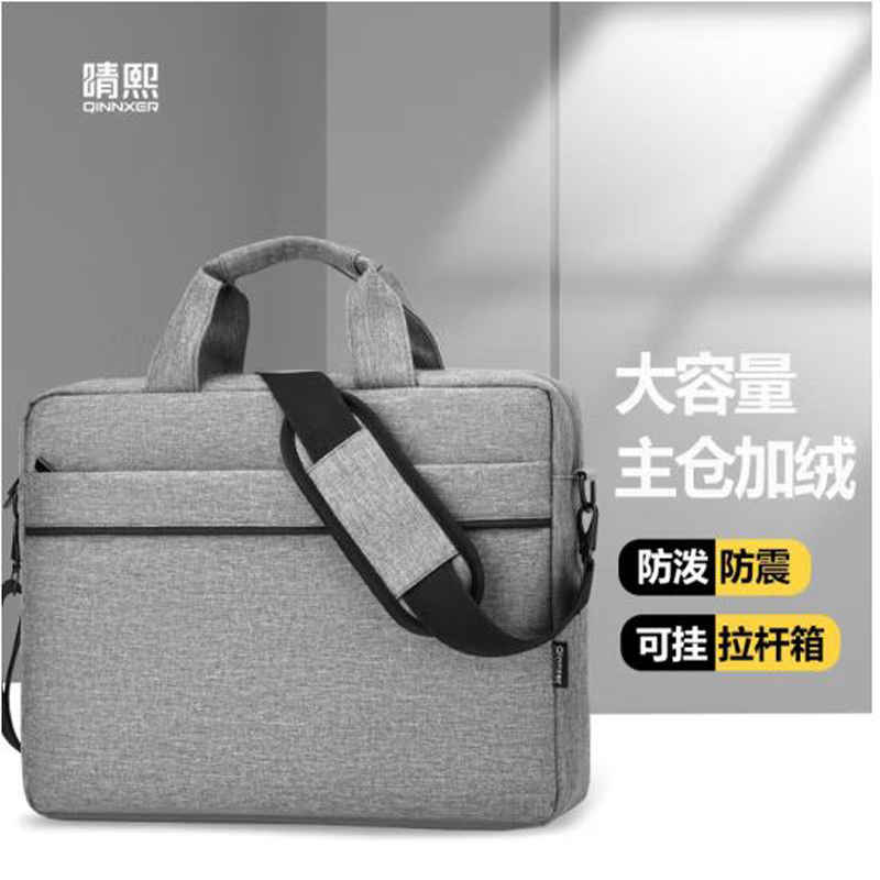 晴熙 15.6-16.1英寸笔记本电脑包单肩包手提公文包防泼水 浅灰色加绒版