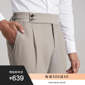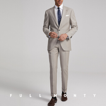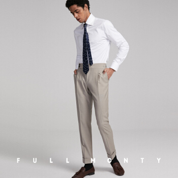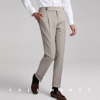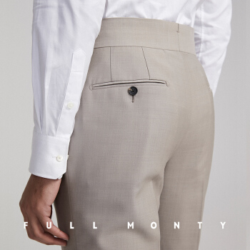 FULL MONTY米白色平纹绵羊毛西裤男高腰巴黎扣商务修身西装裤子春夏 米色1354 32