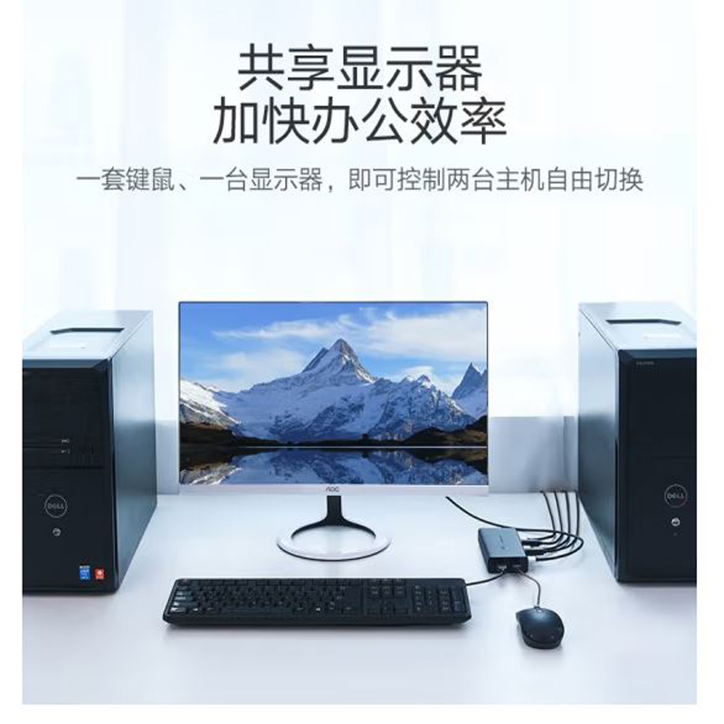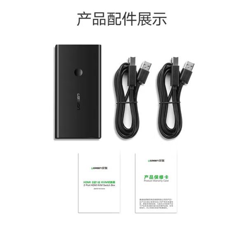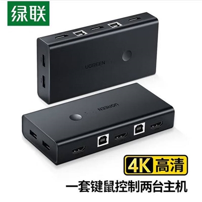 绿联 50744 CM200 KVM切换器 HDMI切屏器2进1出4K高清 USB打印机共享器
