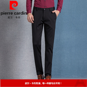 皮尔卡丹品牌官方店2020秋天新款高端商务直筒休闲西裤气质男百搭长裤子修身—针织 黑色 29