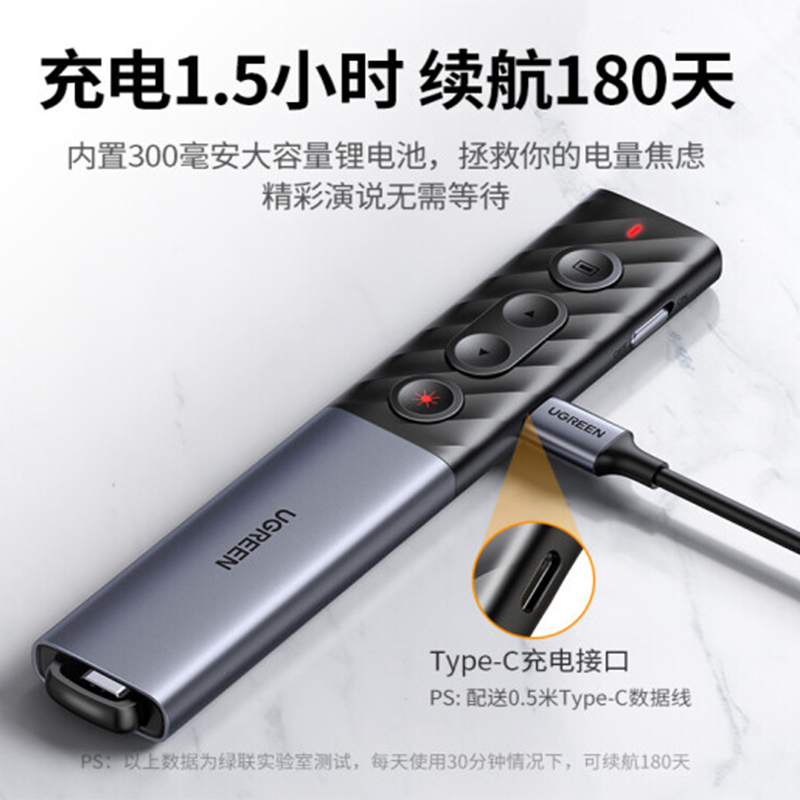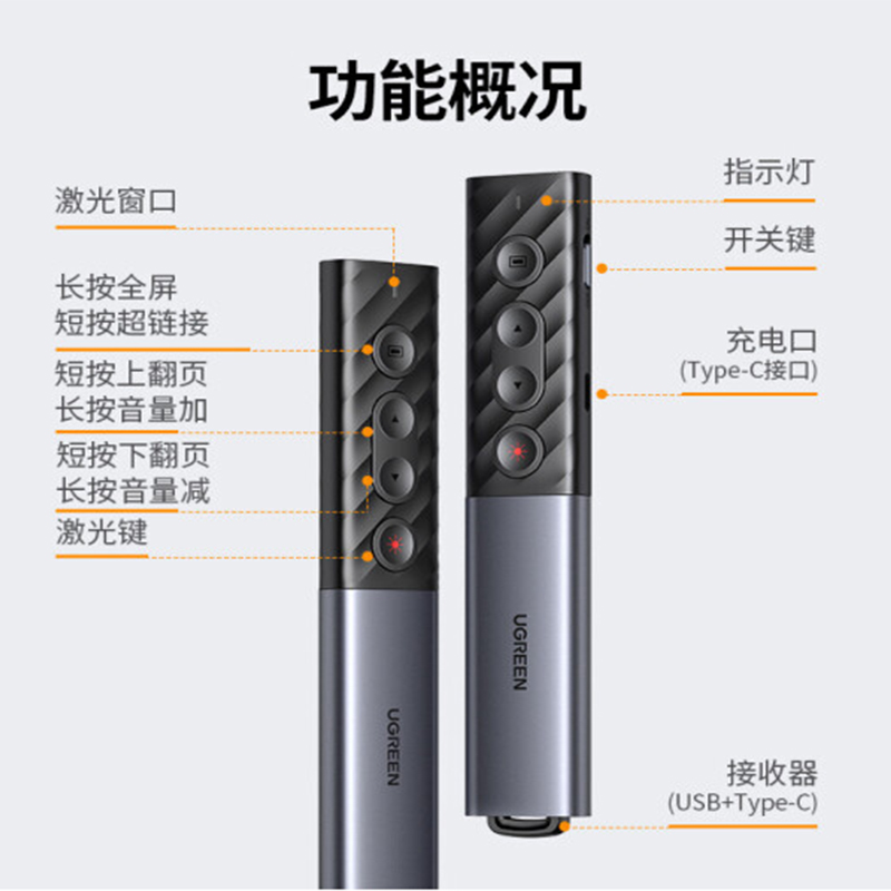 光笔>>绿联(UGREEN) 激光翻页笔 PPT多媒体教学演讲笔 电子教鞭 红外无线遥控演示器放映笔 红光款 LP386(80136)