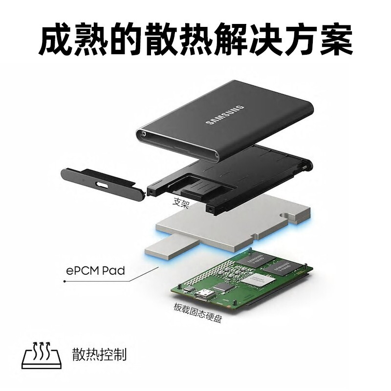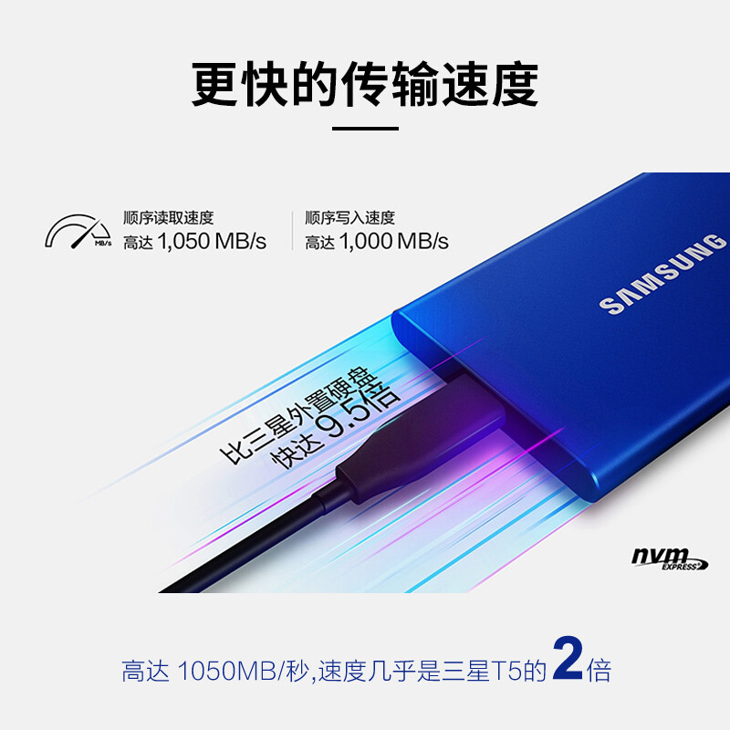 三星(SAMSUNG) 2TB Type-c USB 3.2 移动固态硬盘(PSSD) T7 灰色 NVMe传输速度1050MB/s